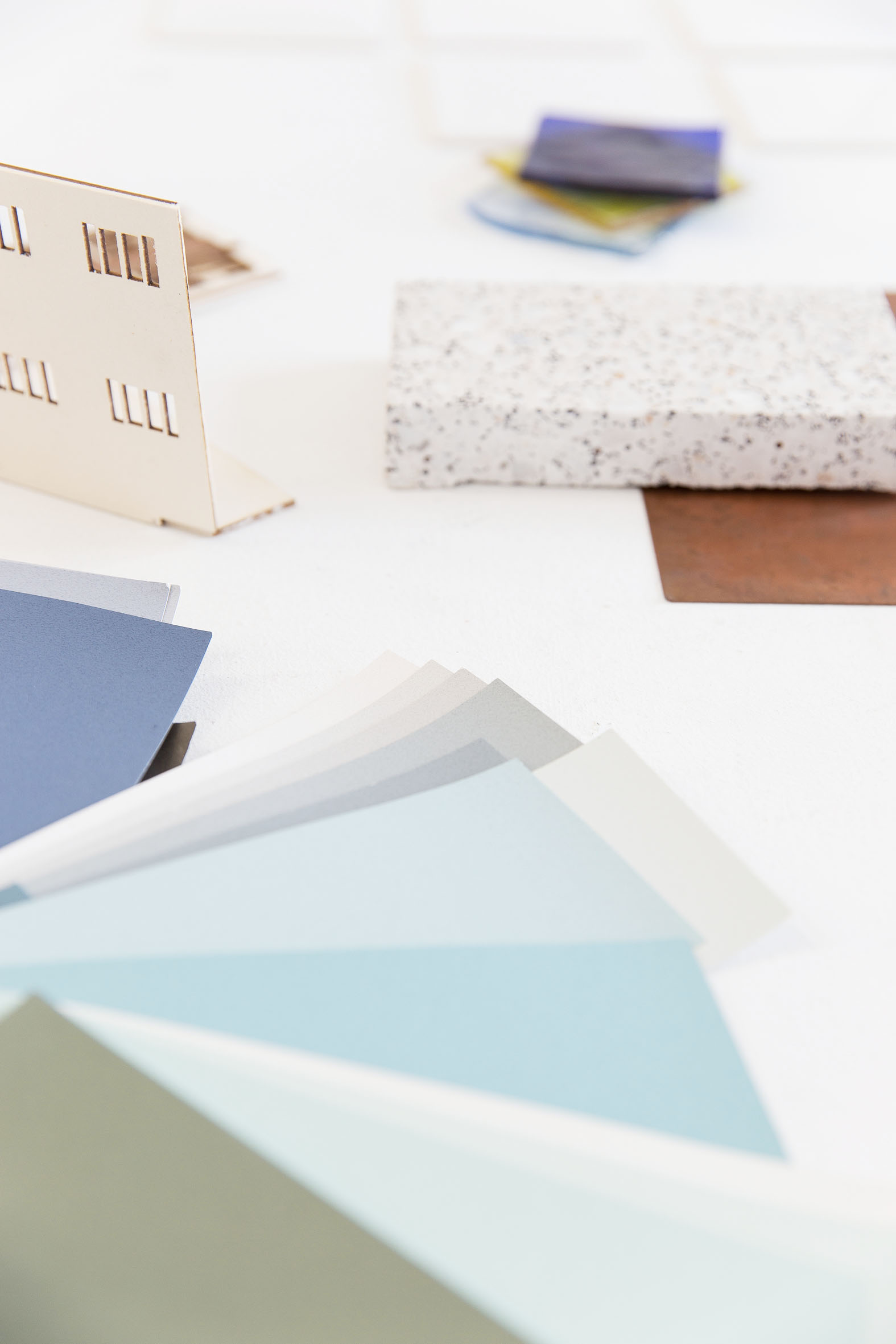 All the stimuli of the city are erased. The light is highly filtered by claustras, colored glass and mat materials. Only the copper is used as a visual borders between the pratices by reflecting the light.