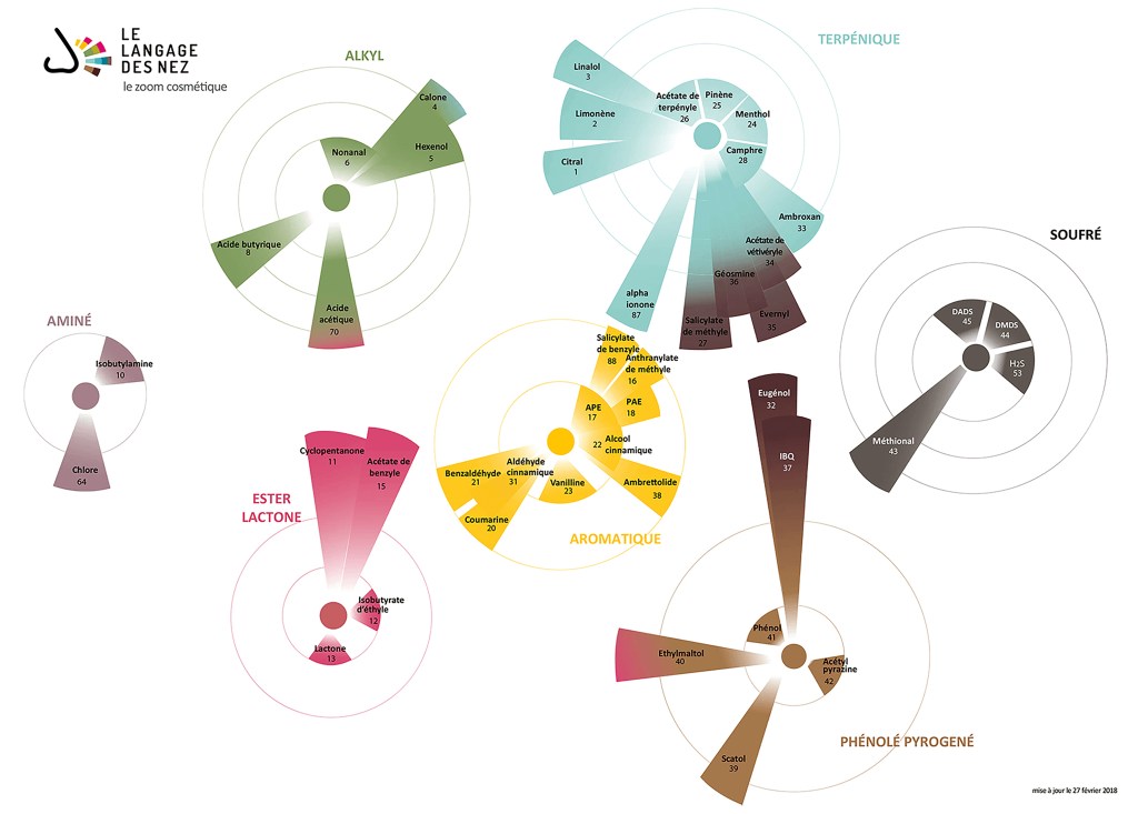 for their capacity to cover the widest spectrum of smells we can meet in our dailylife. This map aims